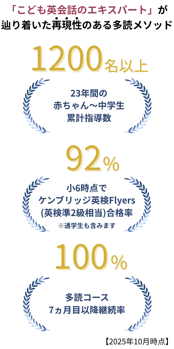23年間で1,200名以上の子どもたちを指導し、小6で英検準2級に到達する実績を積み上げてきました。